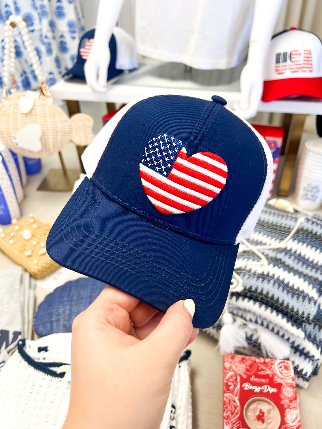 Navy Heart Flag Trucker Hat