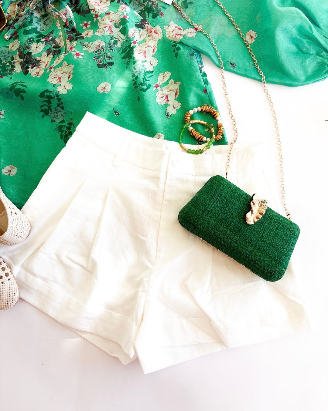 White Front Pleated Shorts