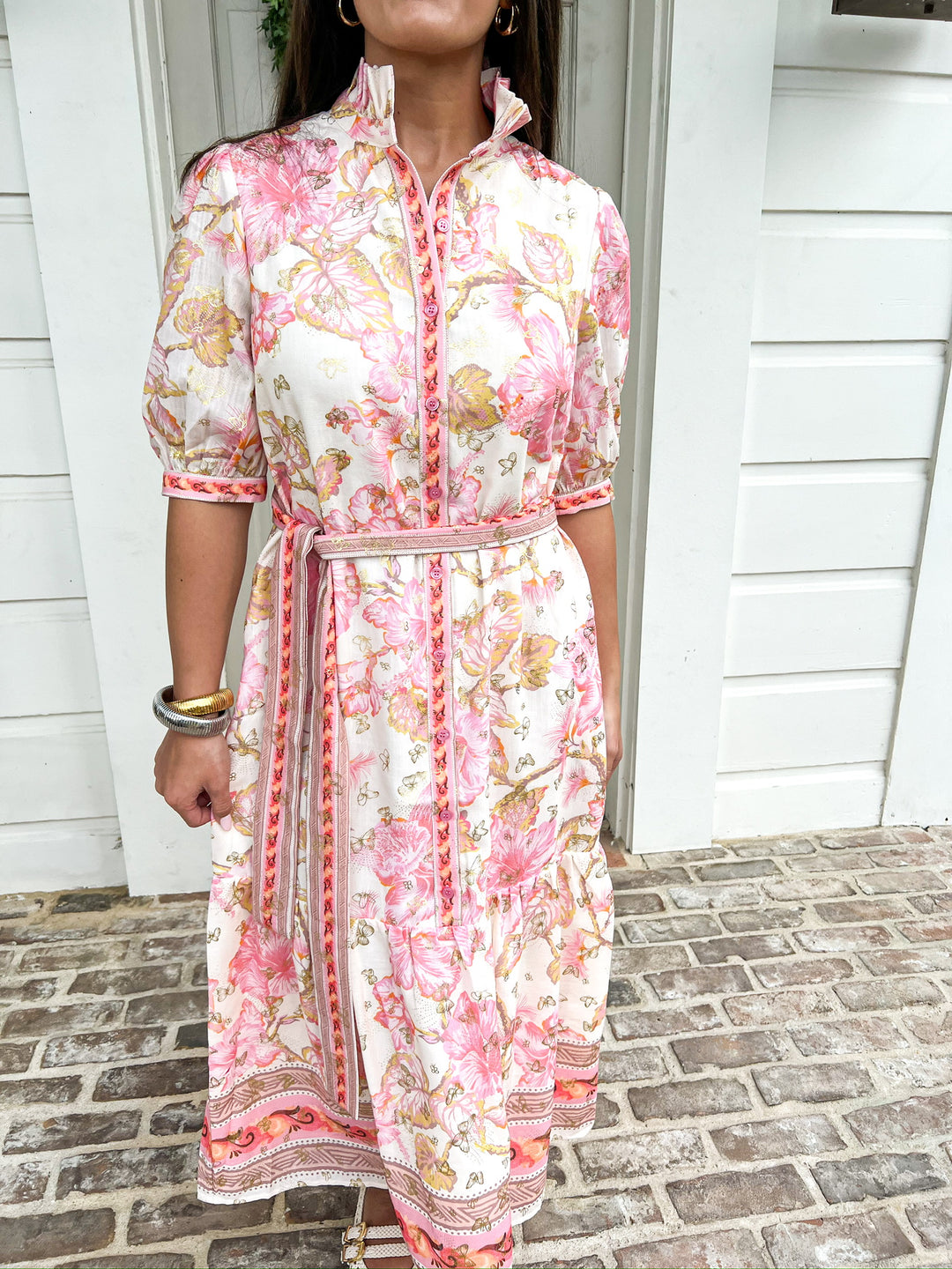 Aloha Bloom Button Front Midi Dress